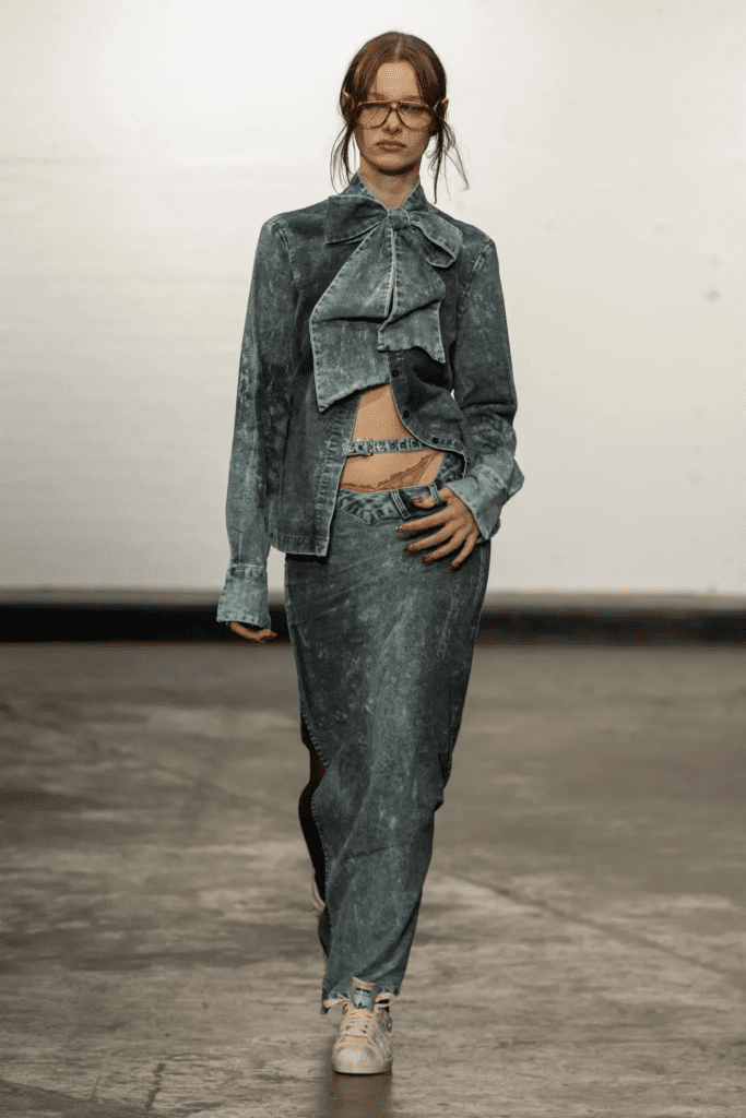 Designers use prints as a storytelling element and to link denim to the rest of their collection. For S/S ’25, florals are a must-have with labels like Marco Rambaldi and Cinq à Sept enveloping blue denim in laser printed flowers. Also look for designers to use laser prints to add a 3D effect to jeans like Vaquera.