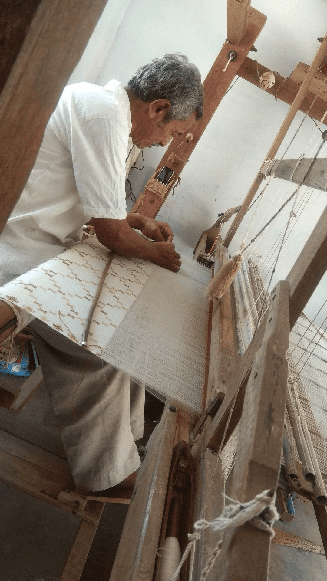 Some dyers and weavers, such as Khengarbhai Manjibhai Vankar, who practiced weaving at the age of ten, as his family had practiced weaving for generations. Their forefather Shahjan Vankar came to Bhujodi 850 years back, whose family grew and today there are more than 100 families from his own next generations.