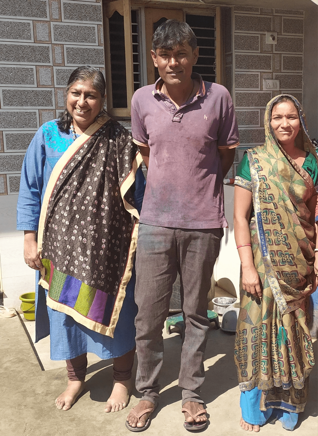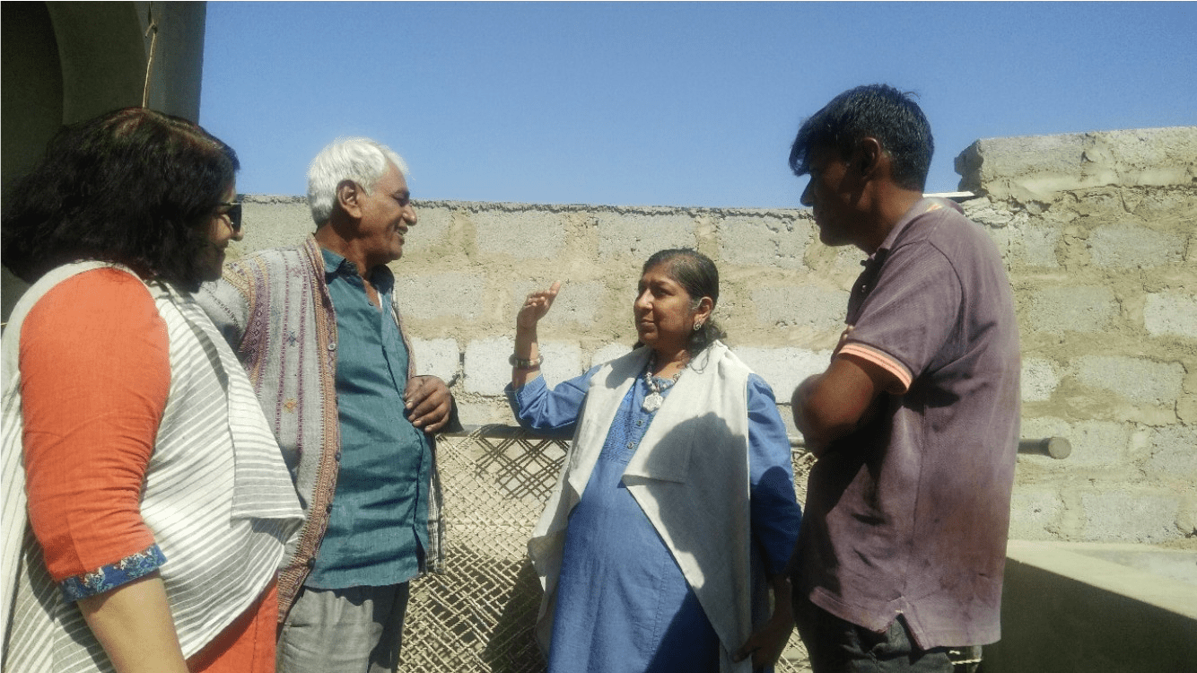 Earlier, Khengarbhai produced for Gurjari and a few other traders, but after the earthquake, he joined a Geneva-based trust that helped karigars/artisans for three years by providing what they needed, like sewing machines, printing tables, etc, by going to villages and identifying the needs of the artisans. Khengarbhai was involved in such rehabilitation work post-earthquake for three years.