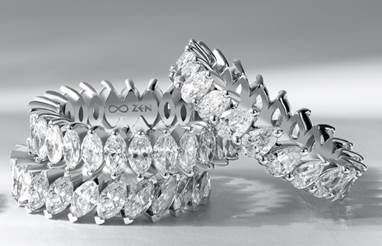 Infinity Teardrop Ring: Featuring a continuous cascade of teardrop diamonds on silver, its subtle inner infinity symbol makes it a profound emblem of eternal love and lasting prosperity.