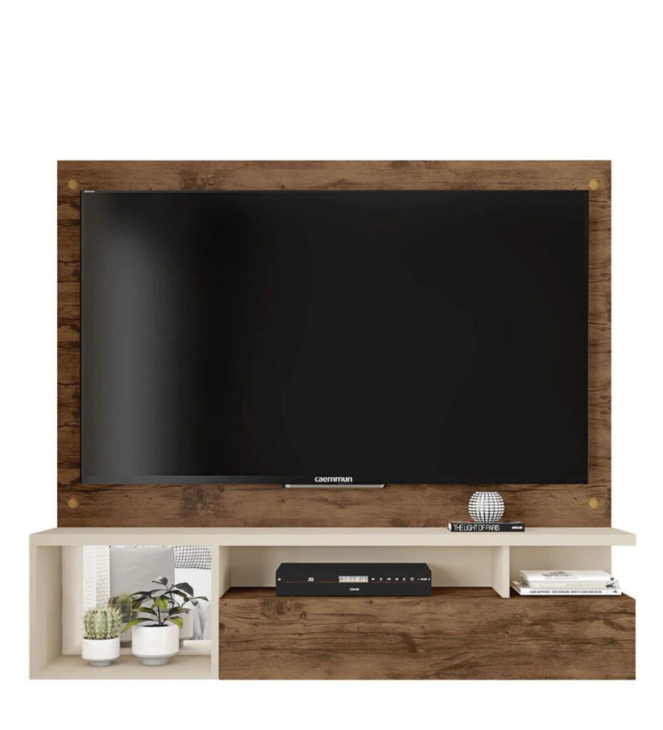 Black Wall Mounted TV Unit in Jatoba & Off White Finish