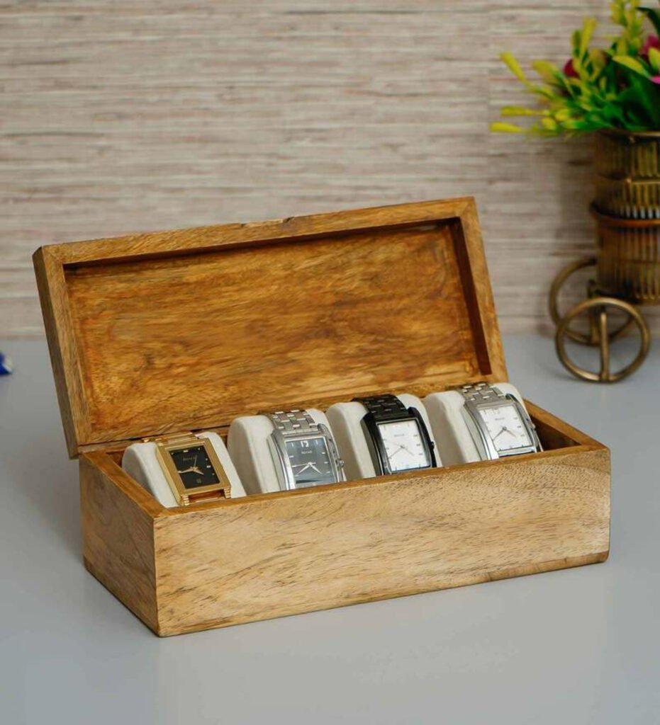 Elegant Mango Wood Watch Organizer Box with 4 Inner Cushions