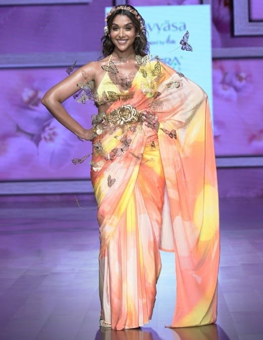 Commanding the runway as Navyasa by Liva’s showstopper, Anupriya Goenka epitomized mindful fashion in a sustainable saree. Every element of her look echoed freedom, grace, and intentional design—cementing her role as a face of eco-elegance.