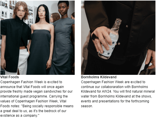 The Minimum Standards are not a new industry audit or certification but a screening framework developed by CPHFW. The screening, executed by the CPHFW Sustainability Committee which is led by Rambøll and supported by Dansk Fashion & Textile and In futurum, ensures that the brands showcasing at the CPHFW AW24 edition are taking action on six focus areas: Strategic Direction, Design, Smart Material Choices, Working Conditions, Consumer Engagement and Show.