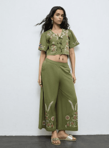 Bombay Paisley Green Embroidered Cotton-Blend Palazzos – ₹1,299