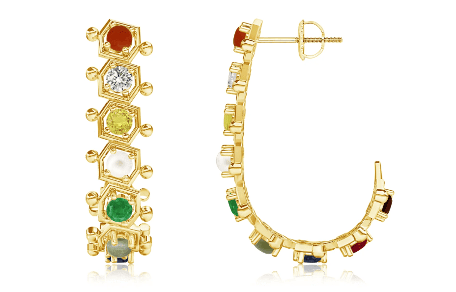 Angara’s Navratna Hexa Earrings