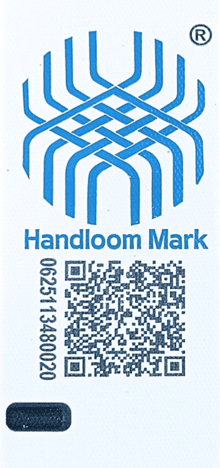 Handloom Mark Label contains Handloom Mark Logo and an intricate, dynamic QR code for each label. Specially designed polyester taffeta labels containing handloom logo and unique QR Codes are affixed to all hand-woven fabrics and products made thereof.