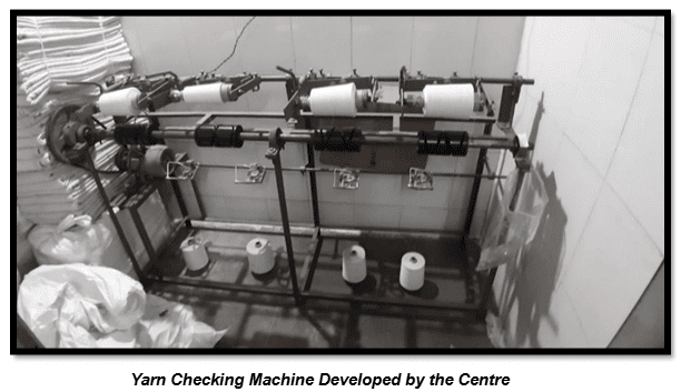 If any processing of the fabric is needed, like bleaching, scouring, wrinkle-free treatment, etc. is done at only the K.V.I.C. approved process house, i.e. B.M.P. process house in Ahmedabad. The Centre has developed its own Yarn checking/ improvement machine, which helps in maintaining the quality of yarns produced.