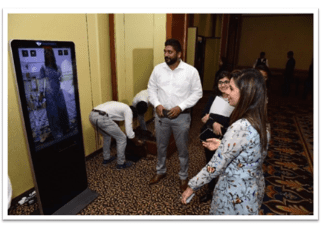 Once the garments were designed and produced from the developed samples and they were photographed and installed on the device called TRYON MAGIC MIRROR with 42 inches touch screen LED. It was a virtual dressing room which was installed during the Fashion Show, Chrysalis 2019 at the hotel The Leela’s on the 9th May’19. This virtual dressing room enables customers to visualise garments on themselves. This helps customers to virtually drape Digitised garments on themselves. To try out all the other garments, one simply needs to swipe the hand in front of the screen, and garments can be seen on oneself on the screen