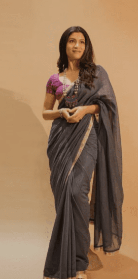 What sets Konkona apart is her ability to make sarees look natural, even in everyday settings. She prefers pieces that are comfortable and allow easy movement. Moreover, she selects prints, tones, and fabrics that mirror her grounded sensibilities. Simple blouses, neat pleats, and clean silhouettes complete her look, making each saree feel like a natural extension of her personality. You can explore similar everyday saree styles from Navyasa by Liva.