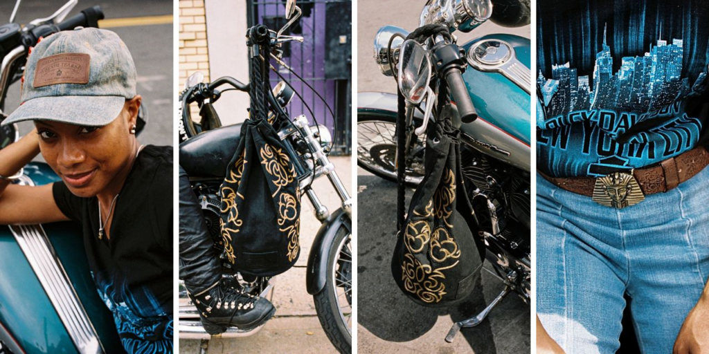 “I have had a fascination with Black bike culture for as long as I can remember. What seems like simple and functional attire at first glance is aesthetically informed by Native American, cowboy, rodeo evidence, workwear, military surplus, outlaw, and drifter influences.” said Tremaine Emory, founder of Denim Tears. “We cooked all of these elements up with the legacy of flash show and Afro opulence to honor the powerful mind state of the Black biker. I know that those who have the attitude, the character, and the front to wear these pieces will do so forever.”