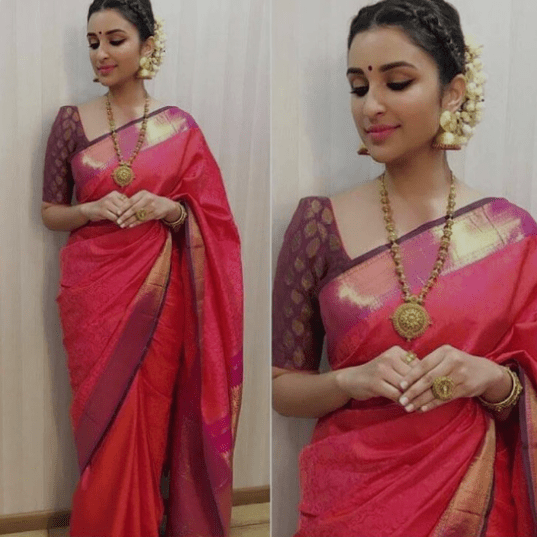 Parineeti’s saree moments highlight understated grace. She often chooses soft silks, pastel chiffons, or contemporary drapes that combine comfort with charm. Whether attending a festive function or walking the red carpet, her styling remains subtle yet striking. To emulate her timeless, feminine vibe, explore elegant drapes from Navyasa by Liva.