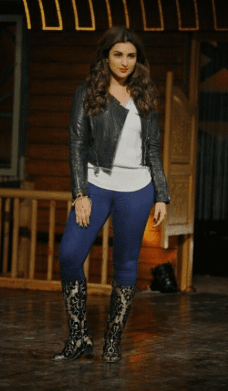 Off-duty or on the move, Parineeti rocks denim like a trendsetter. From high-waisted jeans to cropped jackets, her outfits strike a balance between relaxed and polished. She often pairs denim with graphic tees or casual shirts, showing that comfort can be effortlessly stylish. For a similar cool-girl aesthetic, check out Spykar’s denim collection, designed for fit, flair, and functionality.