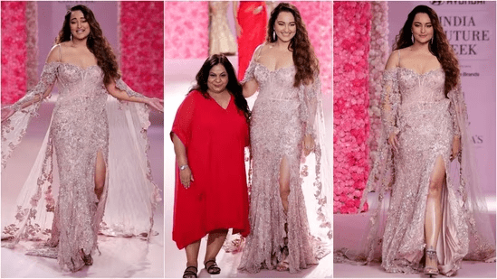 Sonakshi Sinha followed in the footsteps of Parineeti Chopra, who walked the runway shortly after her wedding and made a breathtaking appearance at the FDCI India Couture Week 2024, just a month after marrying Zaheer Iqbal. The actress performed as a showstopper for designer Dolly J’s latest collection, ‘La Vie en Rose’.