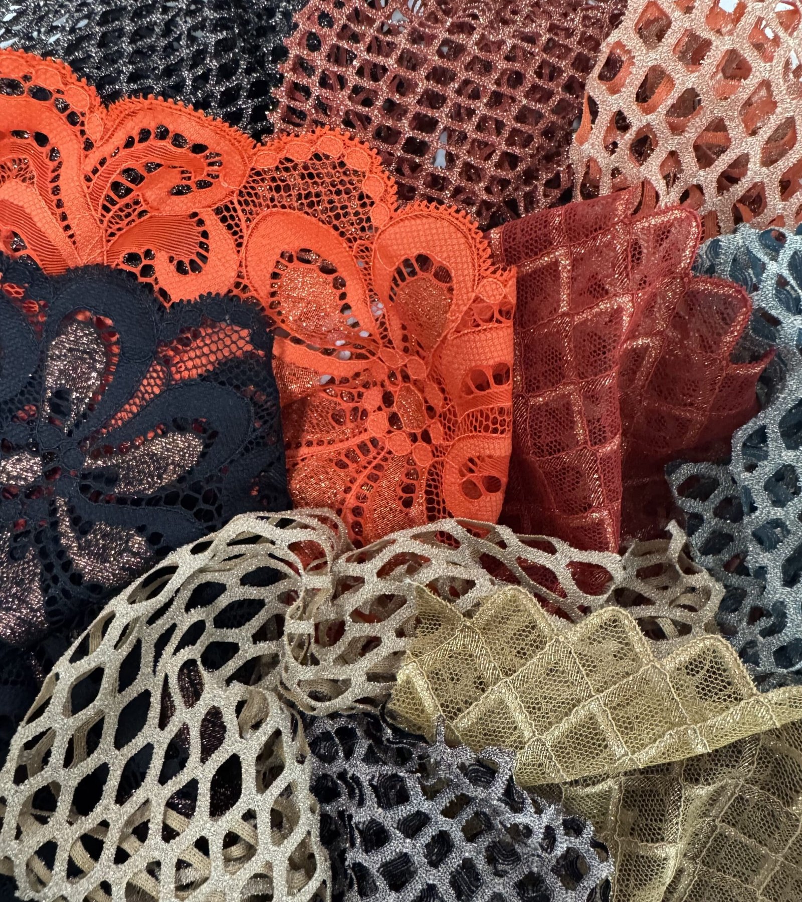brought elegance with purpose, showcasing premium stretch lace incorporating ROICA™ EF, Q-NOVA®, and RENCYCLE®. Over 75% recycled, the line includes printable jacquards and GRS-certified LUREX®, proving performance can be beautiful and sustainable.