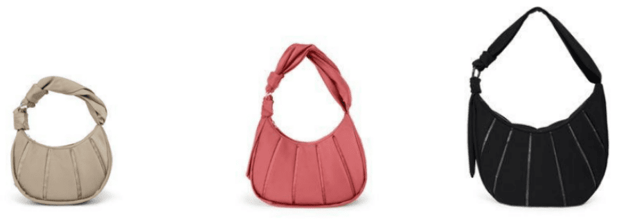 handbags designed for day-to-evening wear and perfect for those on the go. The bags, which come in different sizes, feature pleating with a soft structure, coordinating hardware, and a knotted shoulder strap for added visual and textural interest. Each bag has an exterior microfiber- lined pocket, perfect for a phone or pair of sunglasses. A leather monogram charm, sold  separately, adds personalization to any ASRA bag. The core colorway is black with a metallic textured leather inlay and matte black hardware. The collection offers a host of colorways, including Moonlight and Cameo Rose.