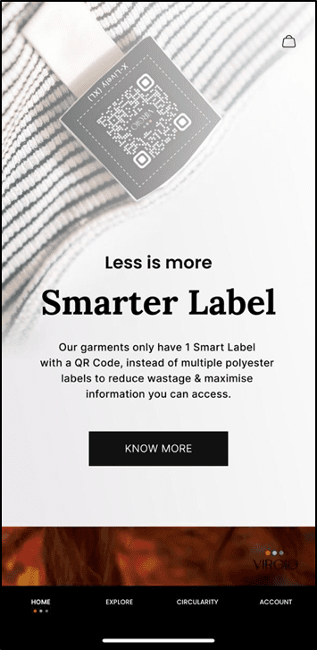Circular Fashion Brand: Access a curated app where users can buy responsibly made clothes that align with Virgio’s circularity pillars: Product, Process, and People – all for the Planet.
